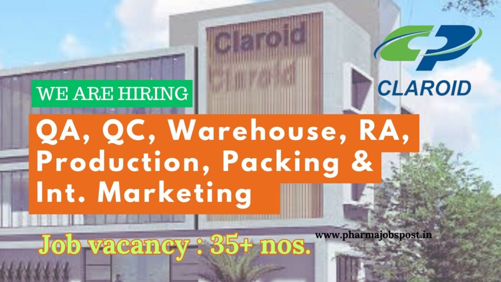 CLAROID PHARMA hiring QA, QC, Warehouse, RA, Production, Packing & International Marketing