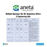 This is an excellent opportunity for pharma professionals seeking growth in a reputed pharmaceutical manufacturing company. Apply at the earliest as these are urgent requirements.