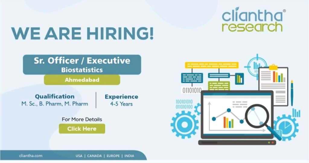 Clíantha research hiring Sr. Officer / Executive -Biostatistics at Ahmedabad