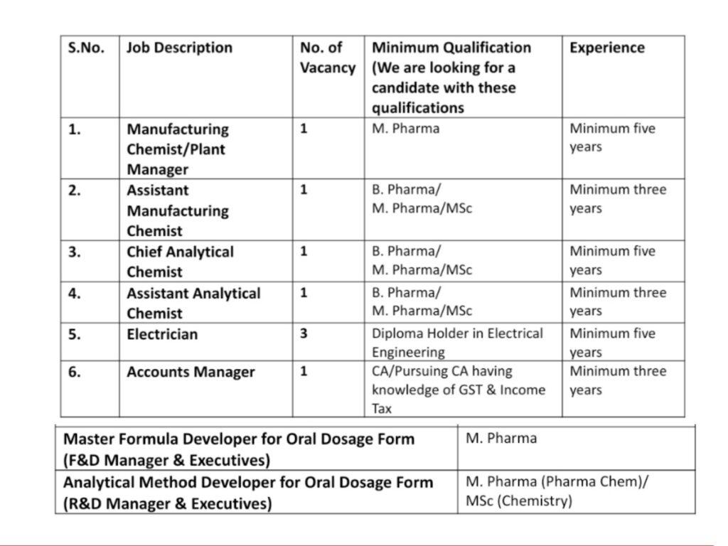 Combitic Global Caplet Pvt. Ltd hiring for Chemist to Plant Manager in Manufacturing, Analytical, F&D, R&D, Electrician, Accounts at at Sonepat – Apply Now