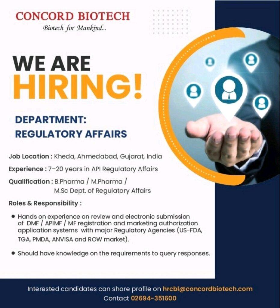 Concord Biotech is looking for a new member to join its Regulatory Affairs Department. See the details below. Get in touch if interested.