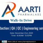 - Qualification & Experience: M.Sc, B.Pharm, or M.Pharm with 2 to 10 years of experience.