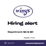 Qualifications: B.Pharma / M.Pharma / B.Sc / M.Sc