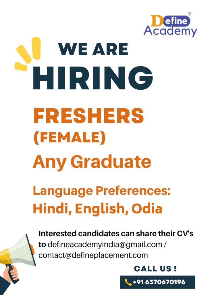 Interested candidates can share their CV’s to defineacademyindia@gmail.com/ contact@defineplacement.com