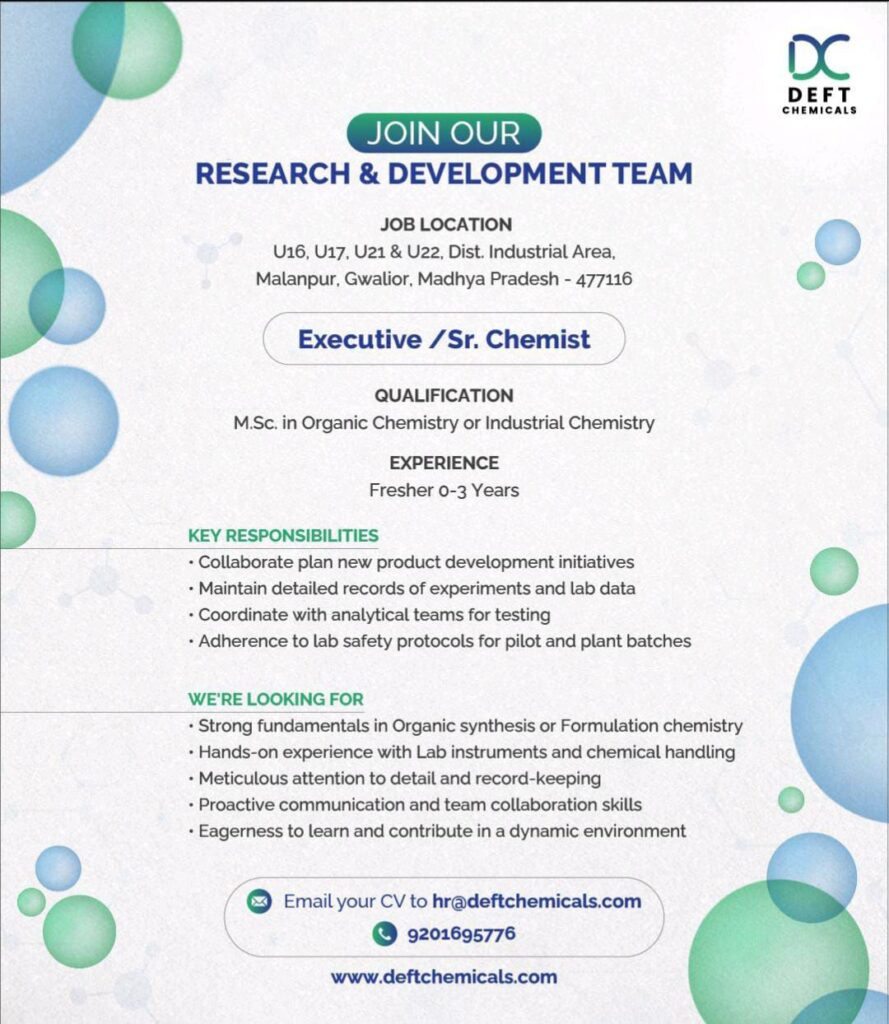Email your CV to hr@deftchemicals.com