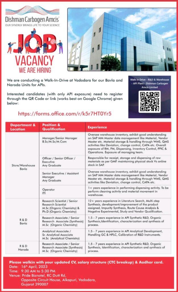 Dishman Carbogen Amcis – Walk In Drive – R&D & Warehouse on 16 April, 2023
