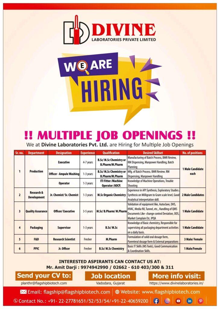 We at Divine Laboratories Pvt. Ltd. are Hiring for Multiple Job Openings