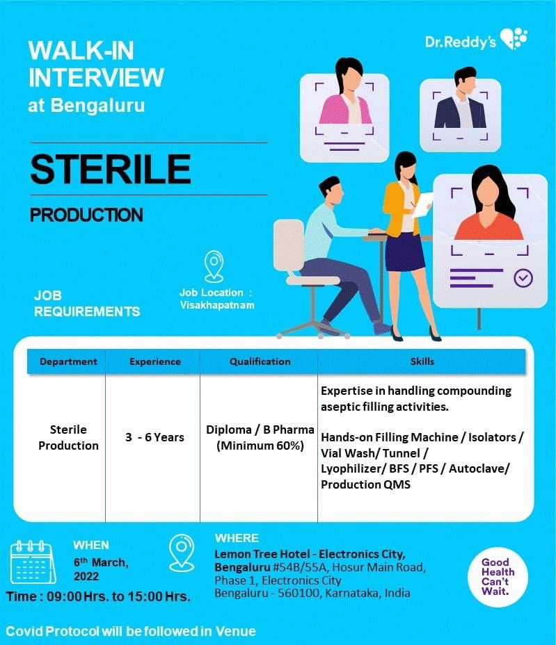 Dr Reddy’s Laboratories Ltd Walk-In Interviews for Vizag Location at Bengaluru on 6th March 2022