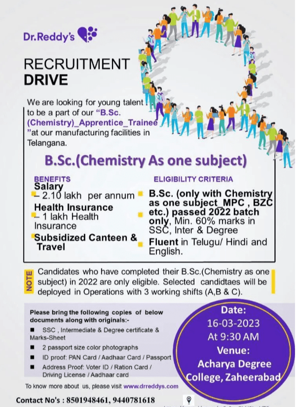 Dr. Reddy’s- Recruitment Drive for B.Sc. (Chemistry) Apprentice Trainee on 16-03-2023