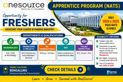 OneSource Pharma Apprentice Program 2026 for Freshers | BPharm, MSc, BE Jobs in Bengaluru