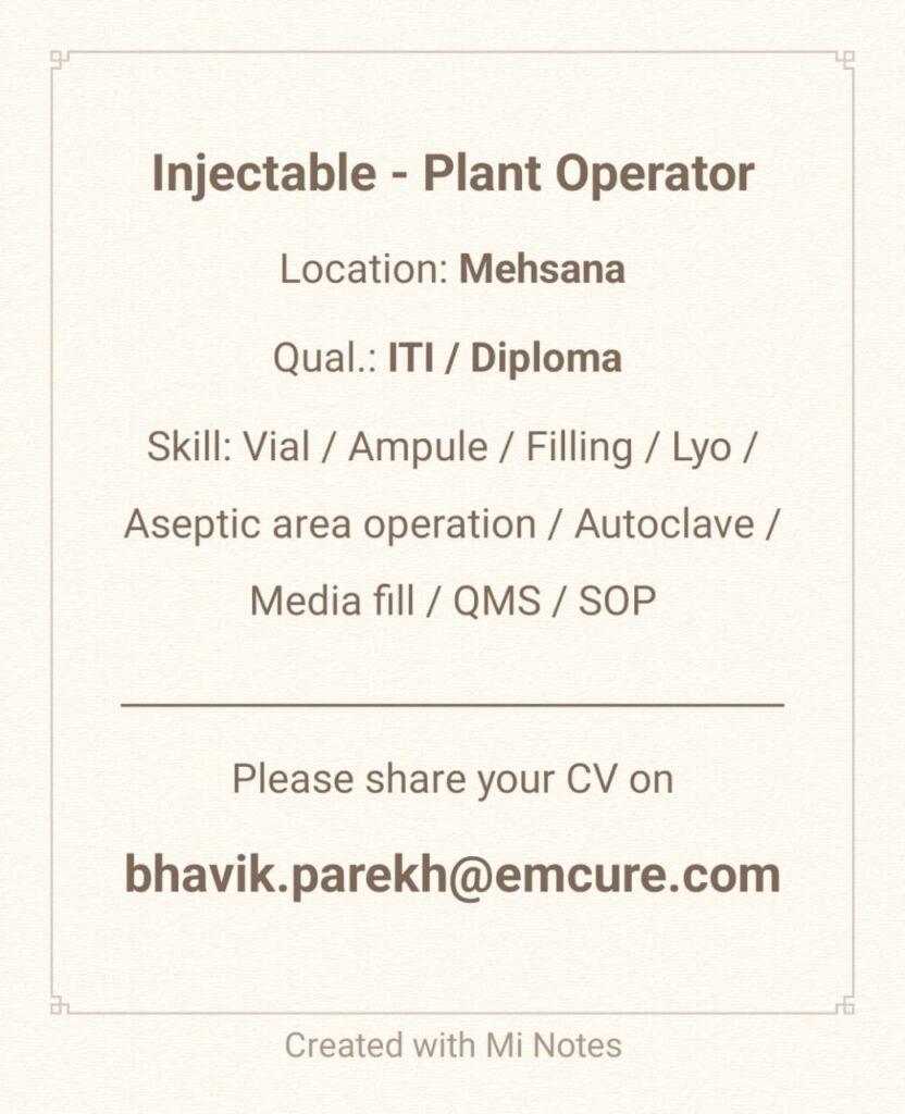 Injectable – Plant Operator