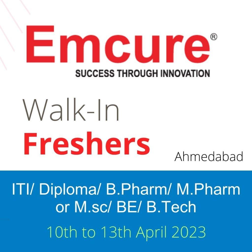 Emcure – Walk In Interview for FRESHER ITI/ Diploma/ B.Pharm/ M.Pharm or M.sc/ BE/ B.Tech on 10 to 13 April 2023