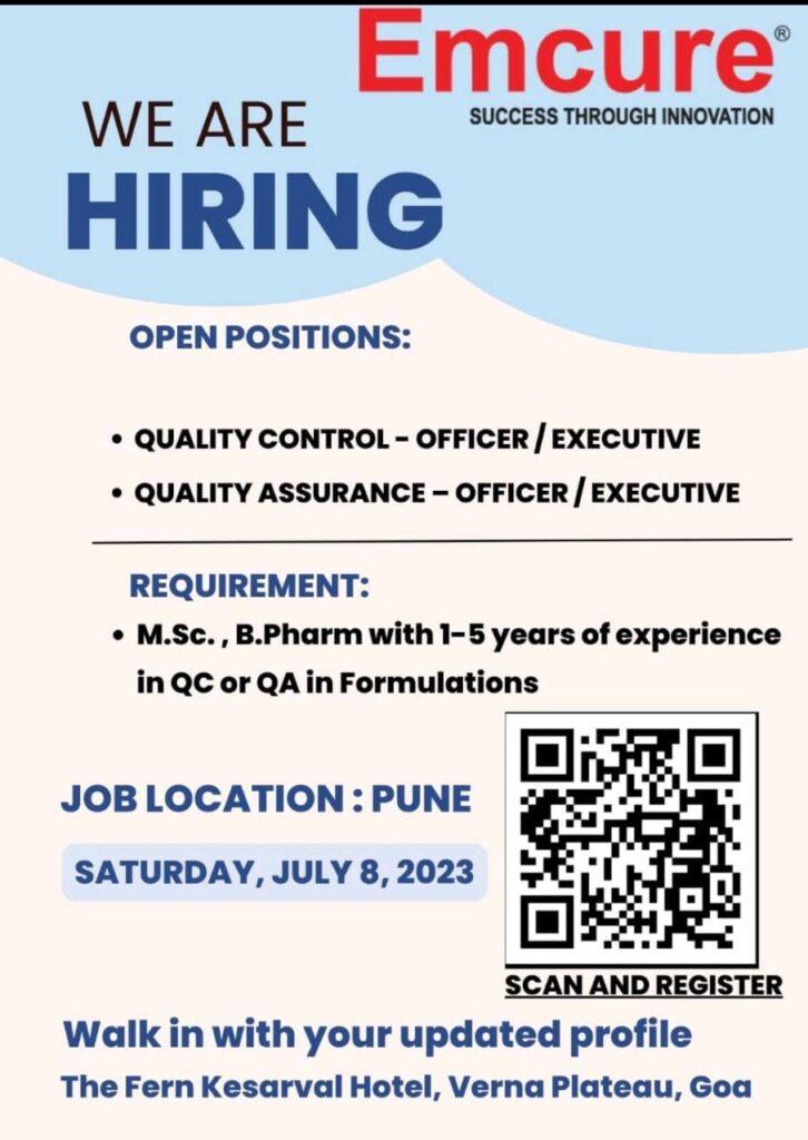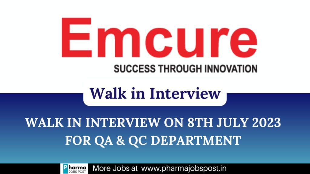 Emcure Walk In Interview on 8 July 2023 for QA & QC department