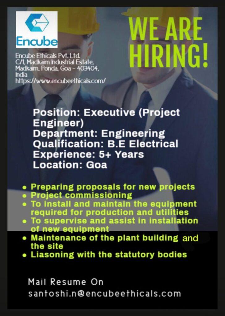 Encube Ethicals Hiring for the position of Executive in Engineering Department