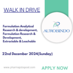 Qualification: B. Pharm / M. Pharm / M.Sc