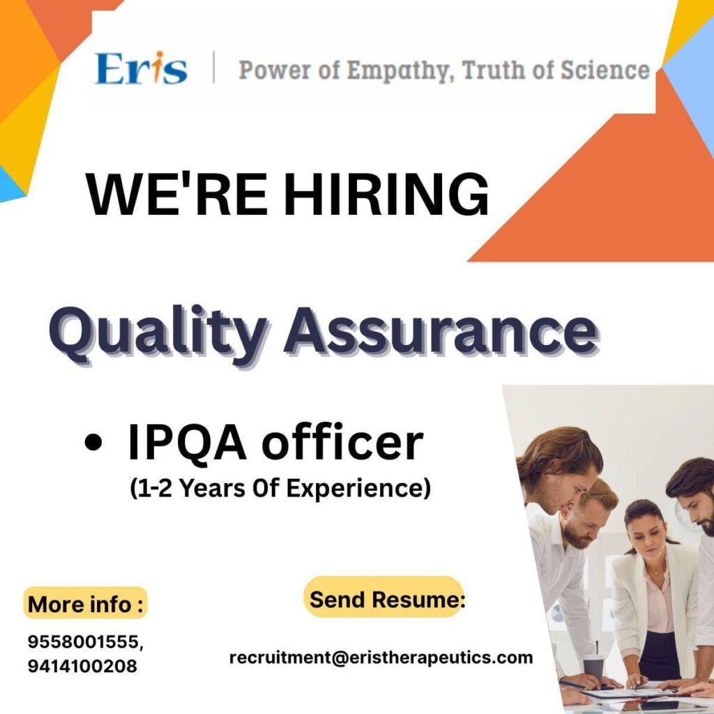 Eris Lifesciences, one of India’s leading pharmaceutical companies known for its commitment to quality and innovation, has announced new job openings in the Quality Assurance Department. This opportunity is ideal for professionals with relevant experience who are looking to advance their careers in the pharmaceutical industry.