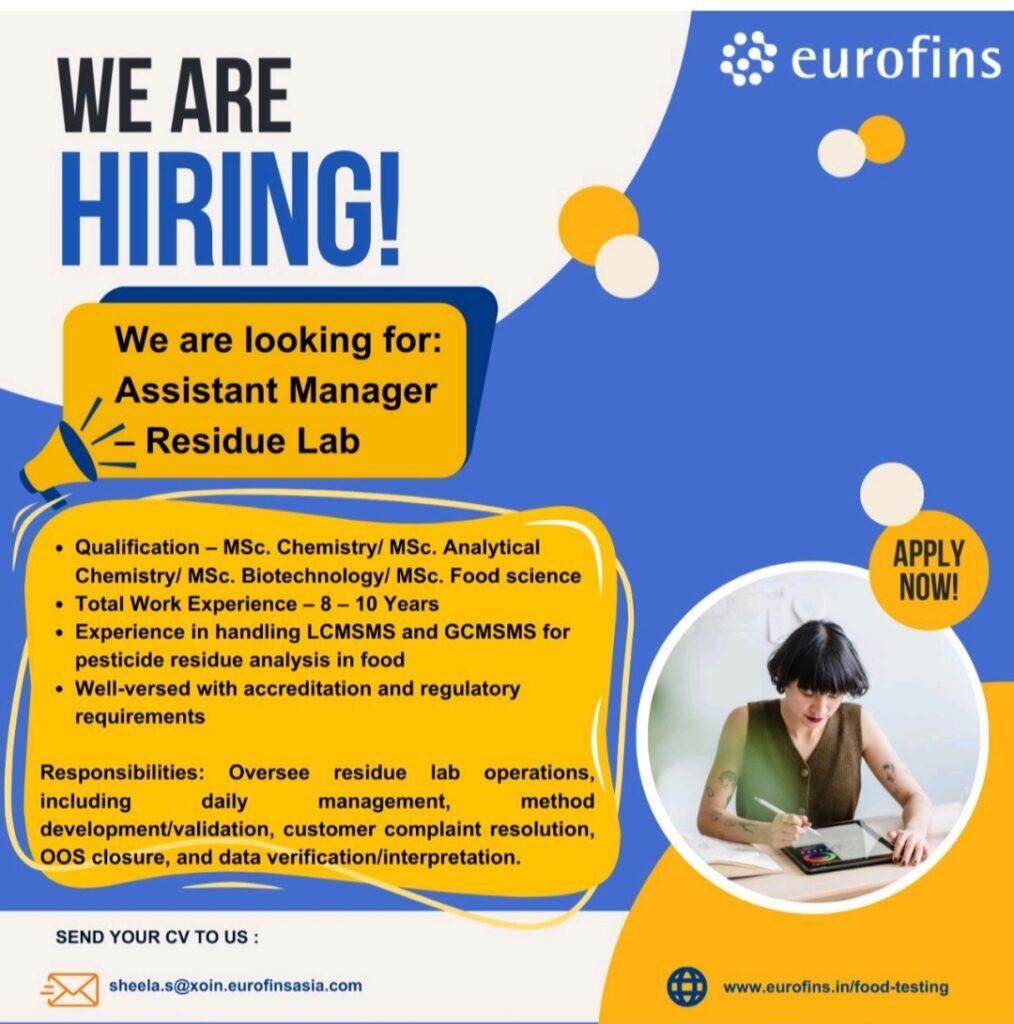 Eurofins Analytical Services looking for Assistant Manager Residue Lab – Apply Now