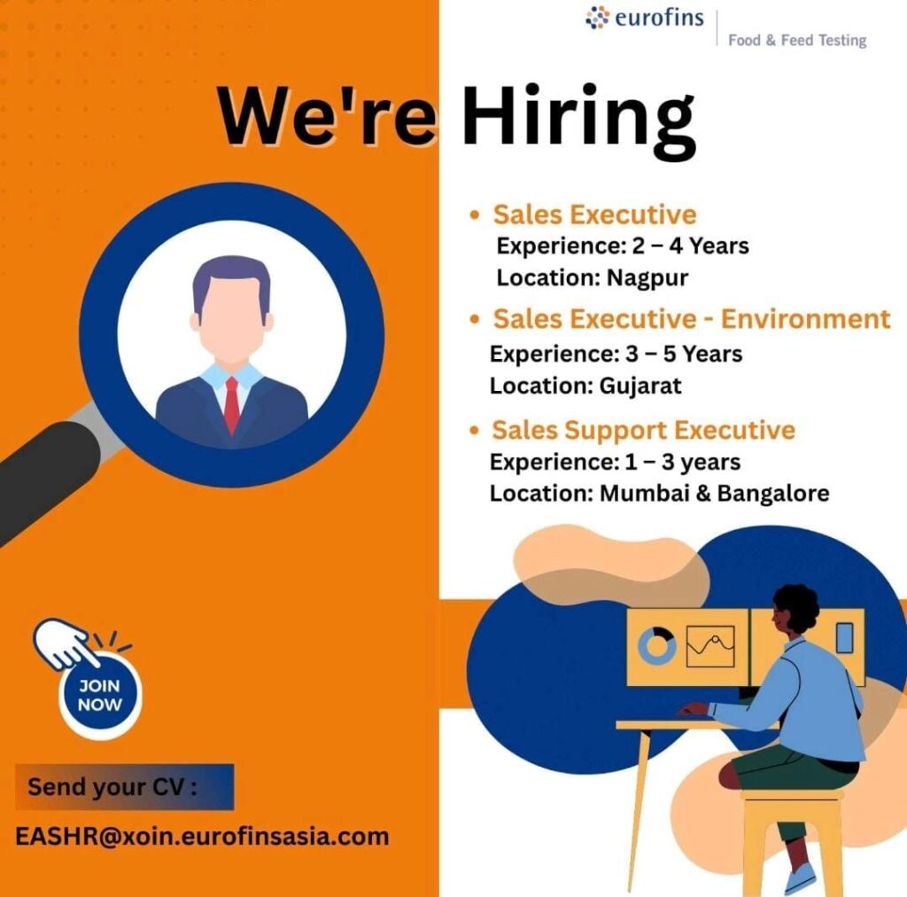 Eurofins is currently looking for skilled and experienced Sales Executives and Sales Support Executives across multiple locations in India.