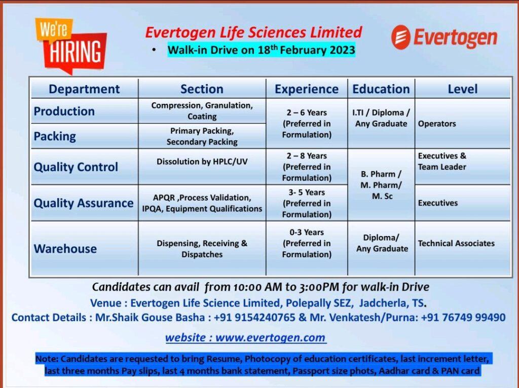 Evertogen Life Sciences Limited Walk-in Drive for Production, Packing, Quality Control, Quality Assurance, Warehouse on 18th February 2023