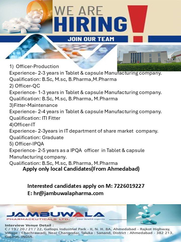 Experience- 2-4 years in Tablet & capsule Manufacturing company.