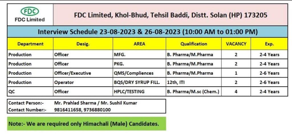 FDC Limited Walk In Drive on 23-08-2023 & 26-08-2023