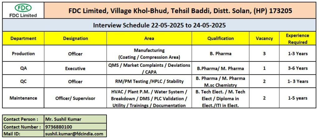 FDC Limited, Village Khol-Bhud, Tehsil Baddi, Distt. Solan, (HP) 173205