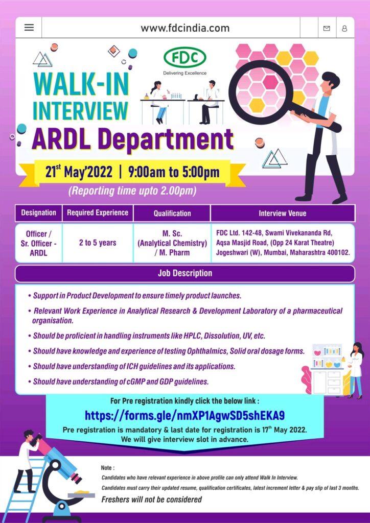 FDC Ltd Walk-In Interview at Mumbai on 21st May, 2022