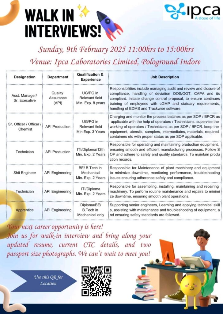 Join us for walk-in interview and bring along your updated resume, current CTC details, and two passport size photographs. We can’t wait to meet you!