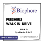 Qualification:B.Sc/ M.Sc B. Pharma / M. Pharma