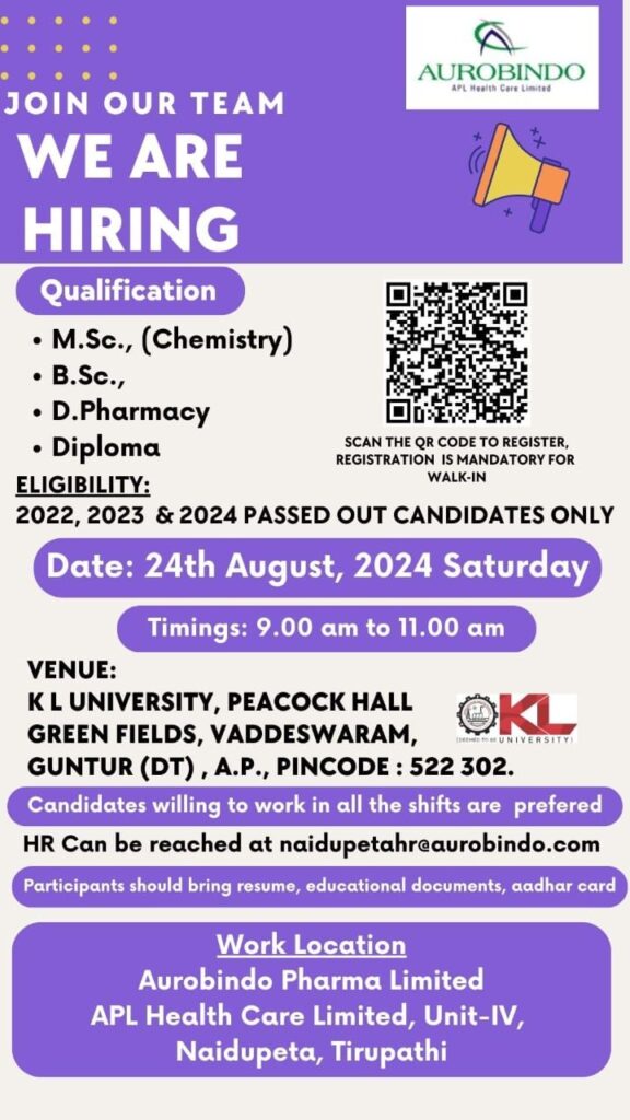 APLHC 4 (Naidupeta, AP) Walk-In Interview for Freshers @ KLU Guntur on 24th August 2024