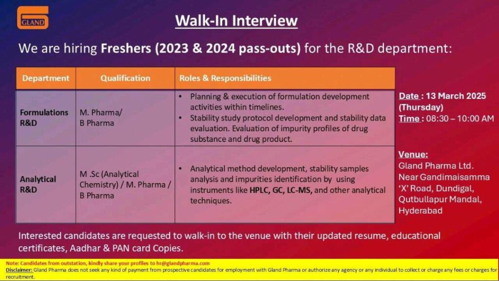 Interested candidates are requested to walk-in to the venue with their updated resume, educational