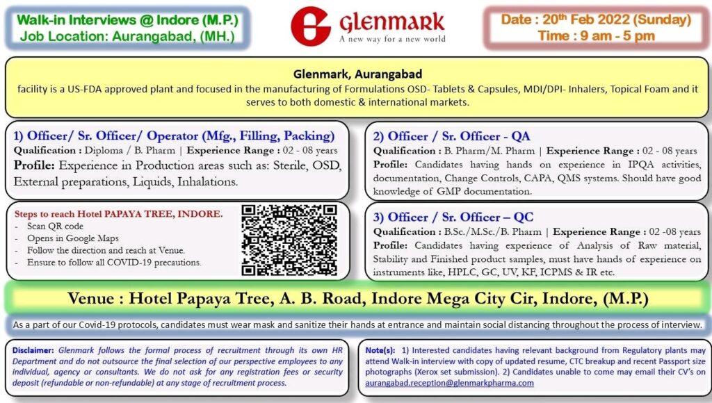 Glenmark Pharma Limited, Walk-In Interviews for Production, Packing, QA, QC & Filling on 20th Feb’ 2021