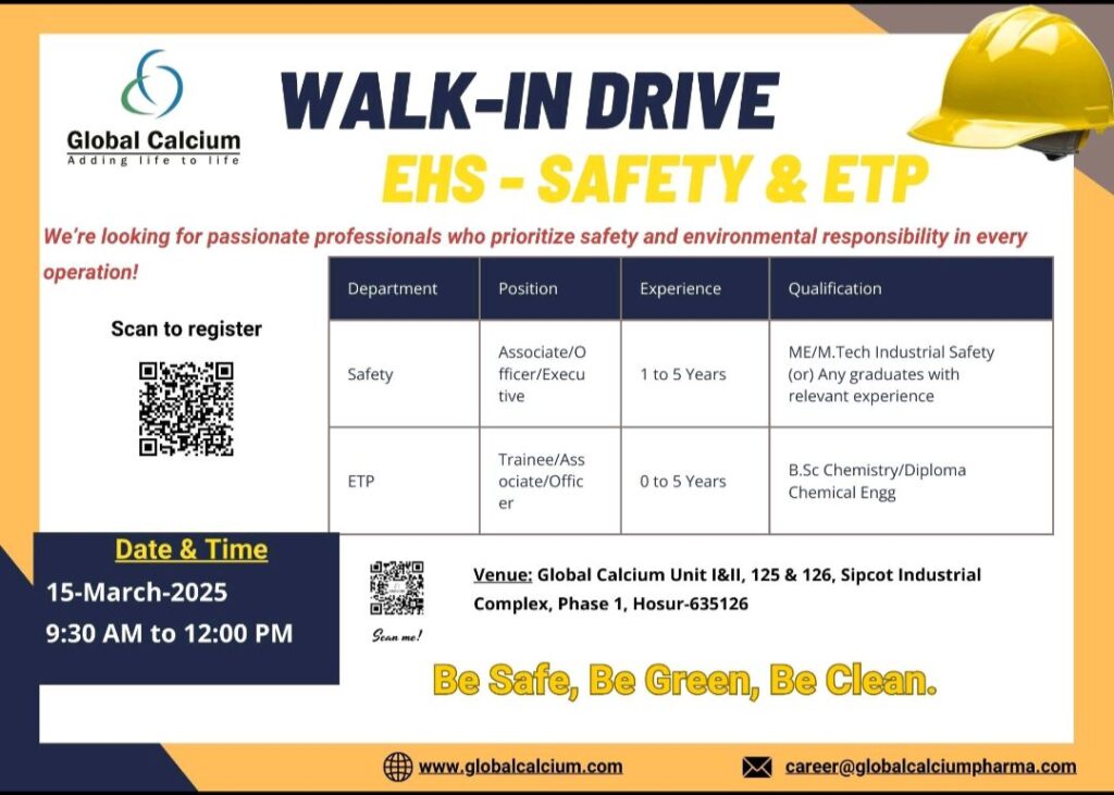 Venue: Global Calcium Unit I8lI, 125 & 126, Sipcot Industrial Complex, Phase 1, Hosur-635126