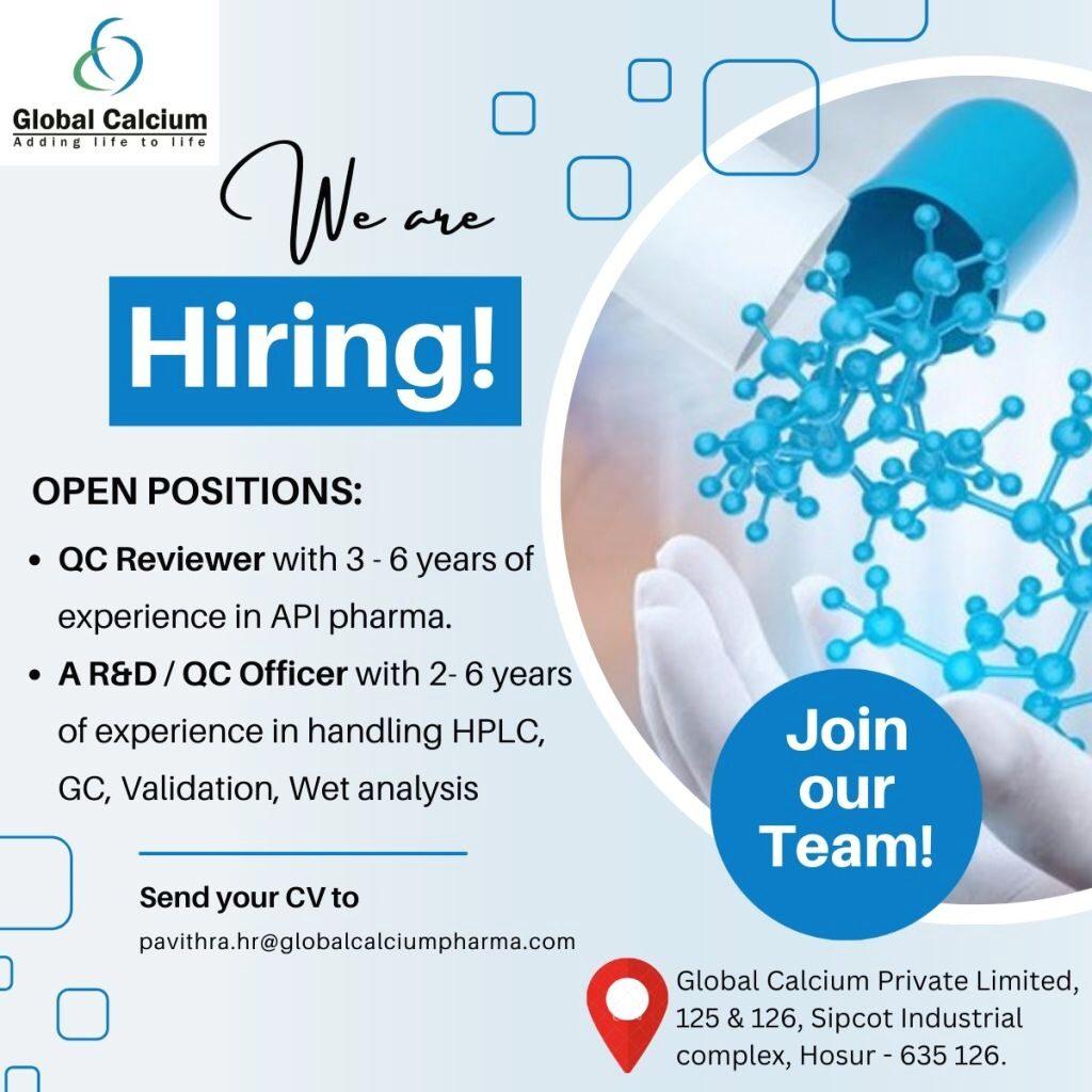 Global Calcium hiring for QC Reviewer & A R&D/ QC Officer