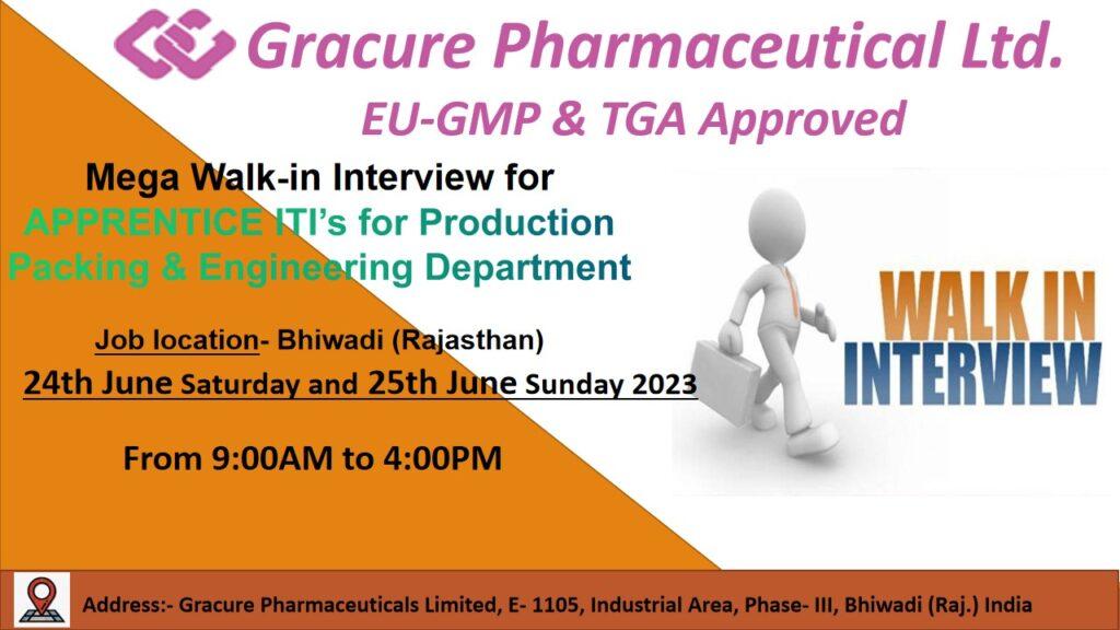 Gracure Pharmaceutical Ltd. Walk in Interview for Production Packing & Engineering department on 24th & 25th June 2023