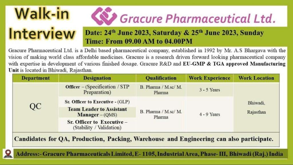 Address:- Gracure Pharmaceuticals Limited, E- 1105, Industrial Area, Phase-III, Bhiwadi (Raj.) India
