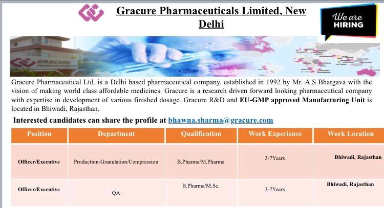 Interested candidates can share the profile at bhawna.sharma@gracure.com