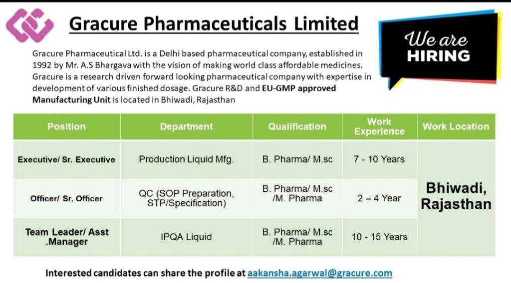 Interested candidates can share the profile at aakansha.agarwal@gracure.com