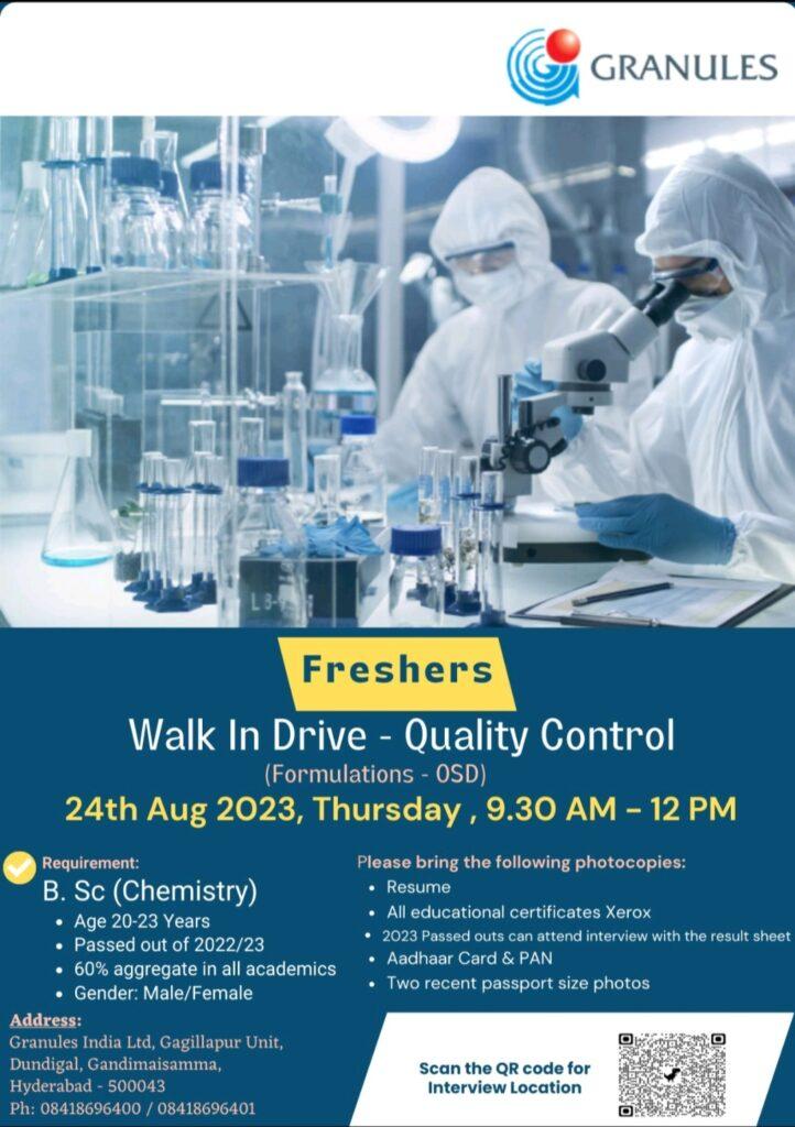 Granules India Ltd Walk In Drive for Freshers on 24th Aug 2023