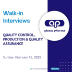 Candidates with relevant pharmaceutical experience may walk-in for the interview.