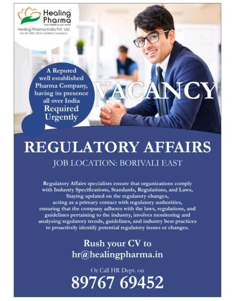 Regulatory Affairs Minimum 5 Years Experience Interested Candidates Can Drop Their Cv & Call – 8976769452