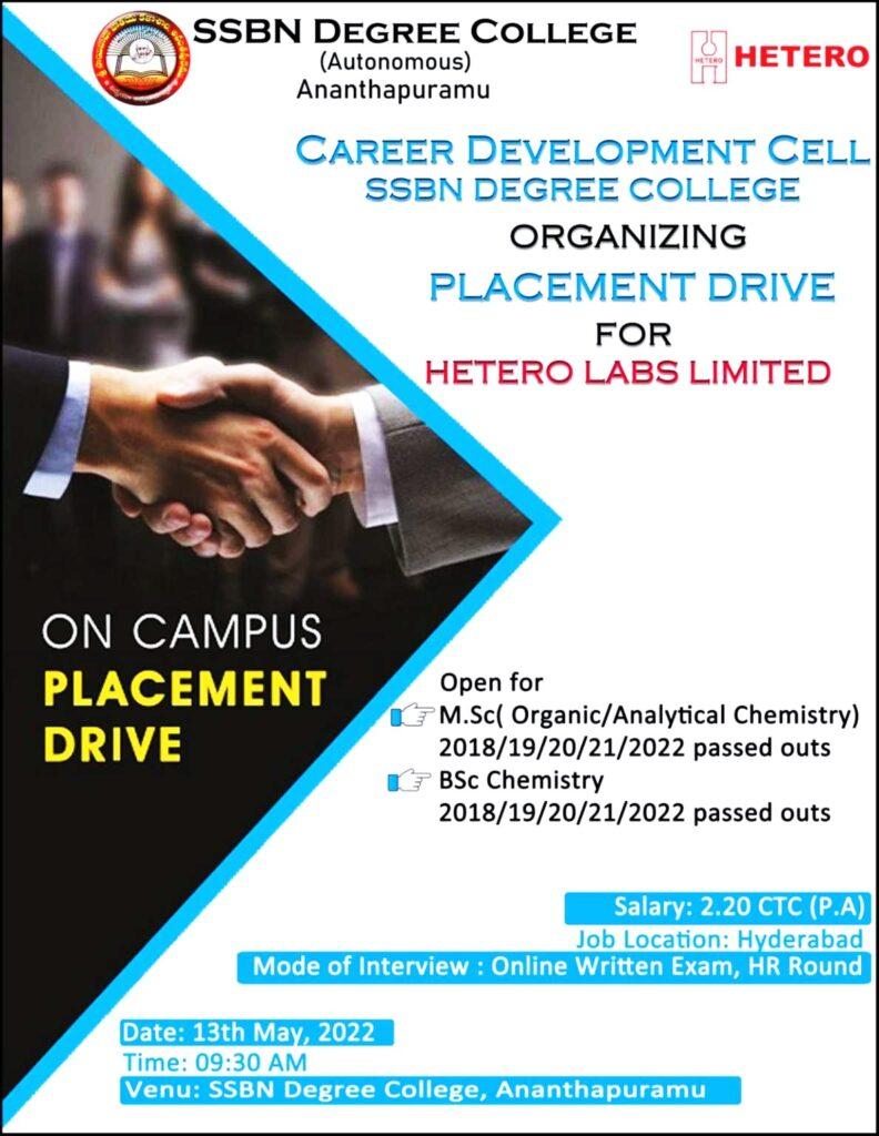 ORGANIZING PLACEMENT DRIVE FOR HETERO LABS LIMITED