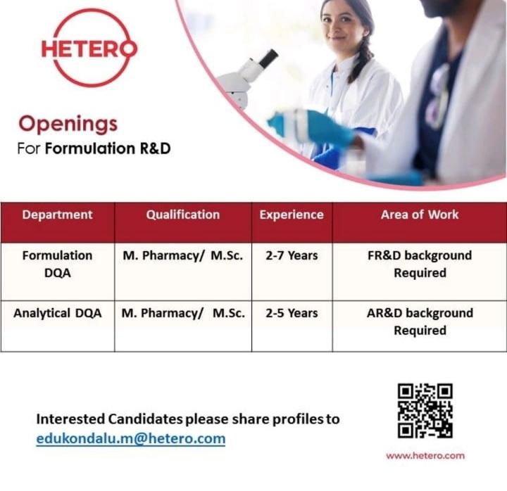 HETERO job vacancy for Formulation DQA, Analytical DQA | Apply Now