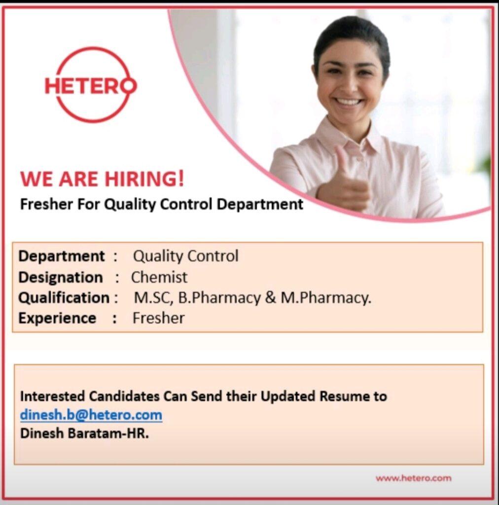 Hetero Labs : Hiring Freshers M.sc/B.Pharmacy/ M.Pharmacy- 2019/ 2020/ 2021/ 2022 Passedouts