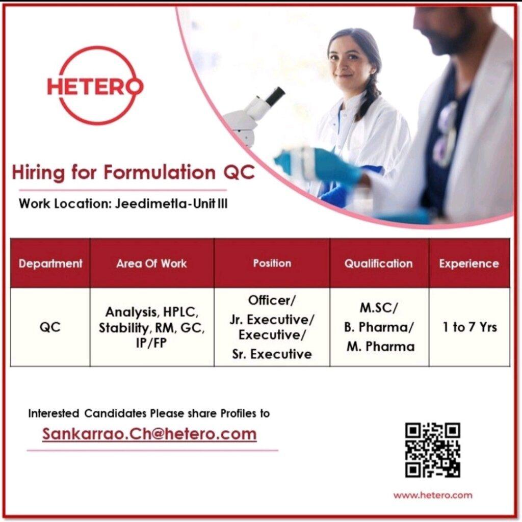 Qualification: M.SC/ B. Pharma/ M. Pharma