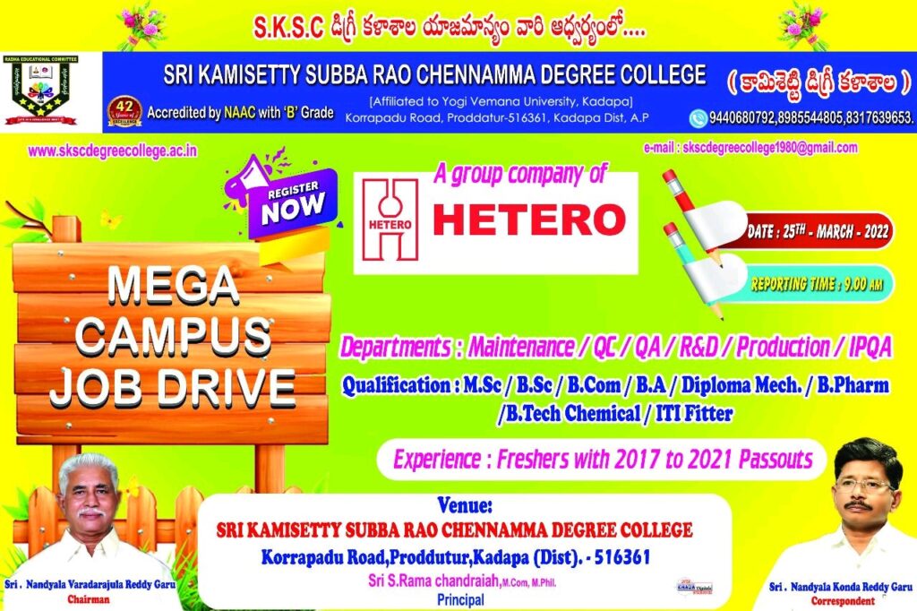 HETERO MEGA CAMPUS JOB DRIVE for FRESHERS in Maintenance/QC/QA/R&D/Production/IPQA on 25th March 2022