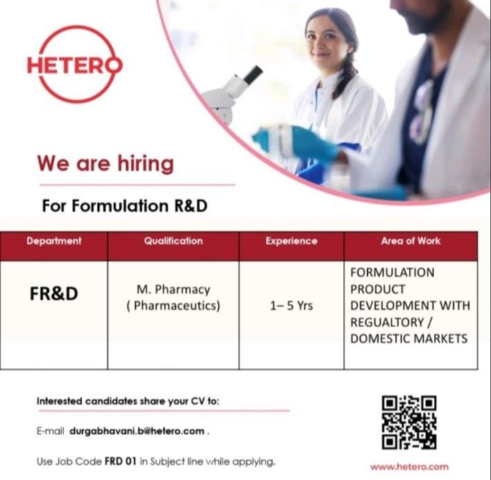 Hetero – openings for FR&D- OSD| Apply now