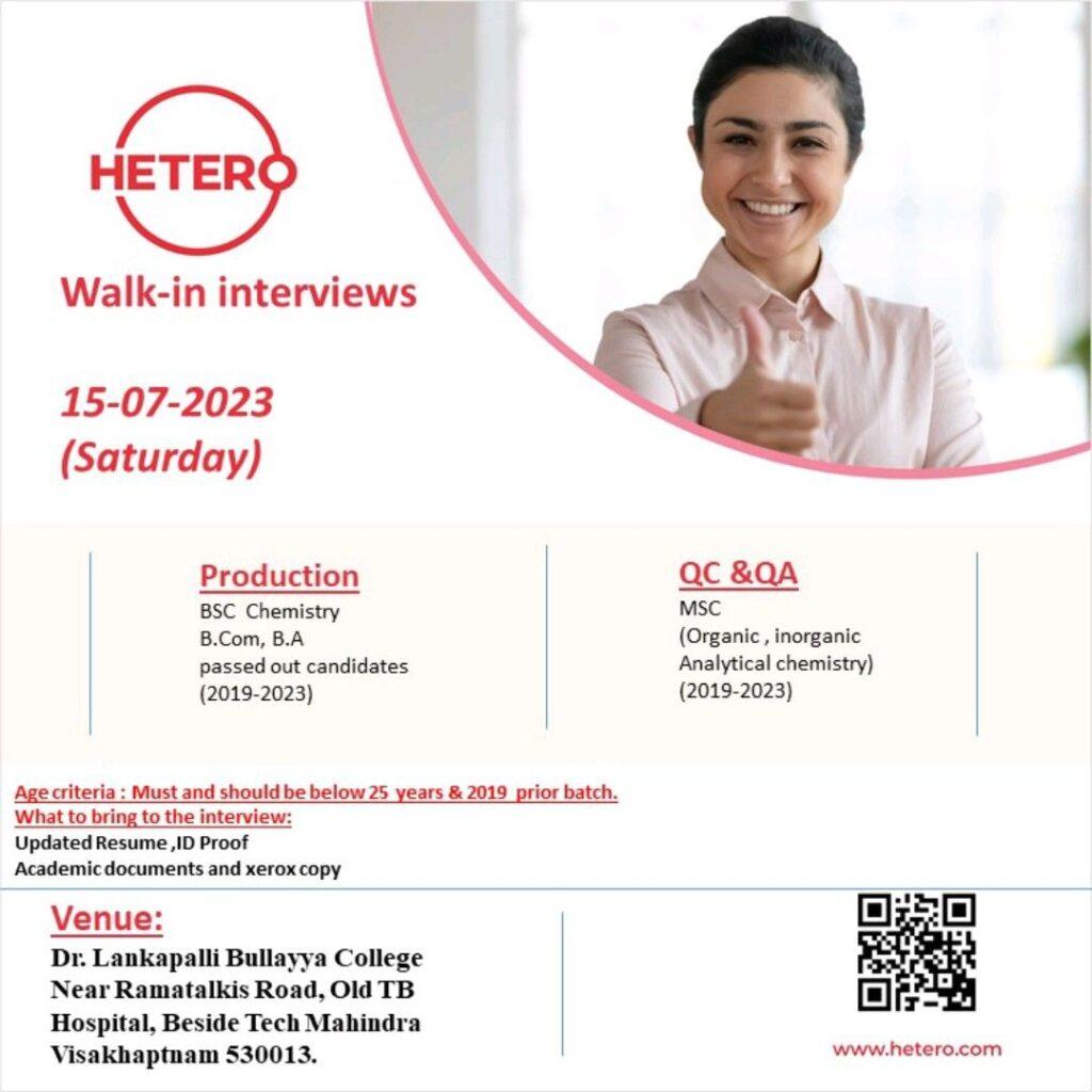 Hetero – Walk In Interview for Freshers – Production, QA, QC on 15/July/2023