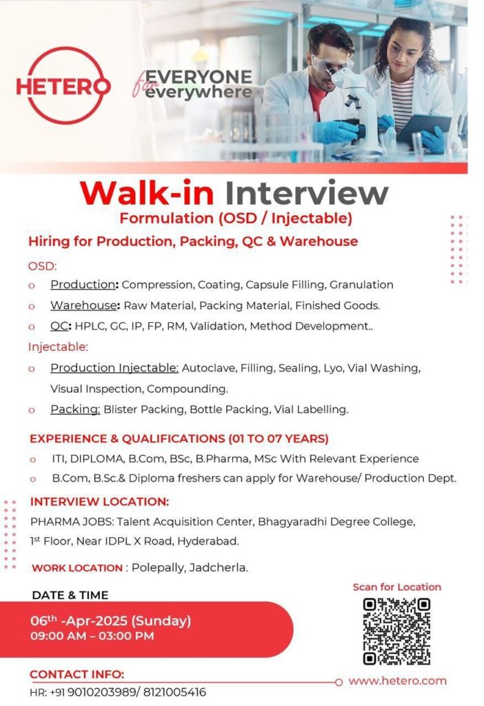 • ITI, DIPLOMA, B.Com, BSc, B.Pharma, MSc With Relevant Experience B.Com, B.Sc.& Diploma freshers can apply for Warehouse/ Production Dept.