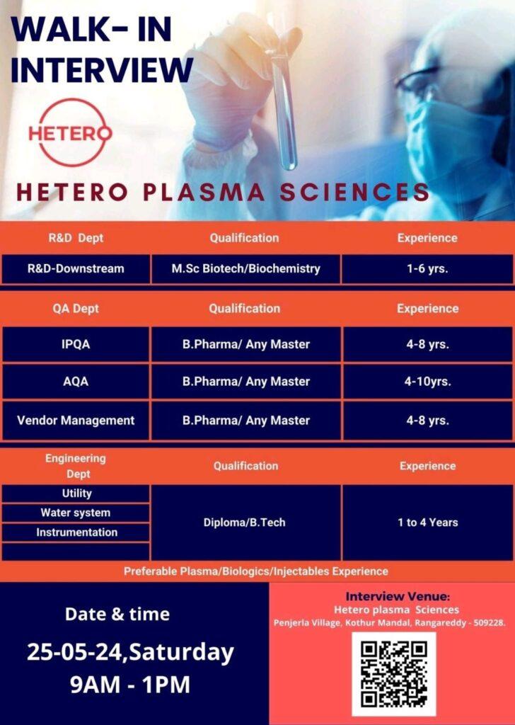 HETERO walk in interview for R&D, QA & Engineering department on 25-05-24, Saturday